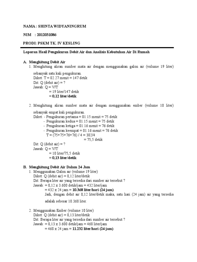Hasil Pengukuran Debit Air Dirumah