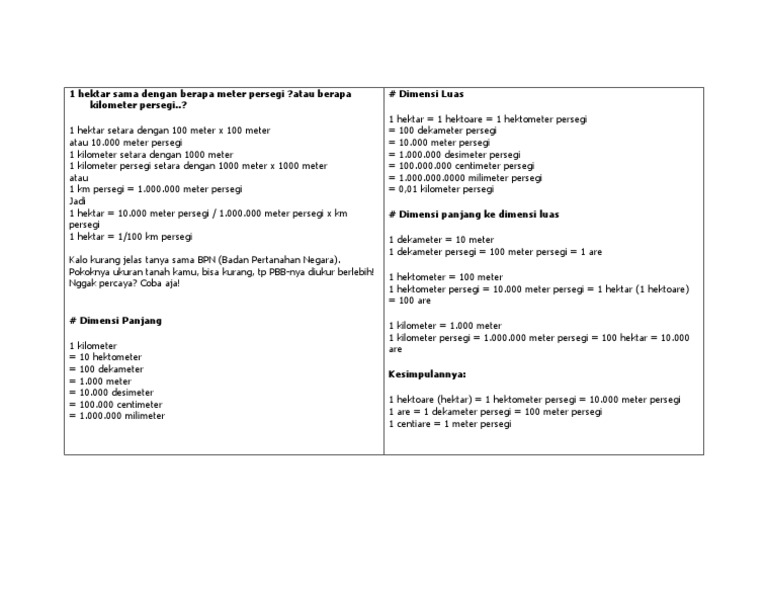 DOC) Satu Hektar Berapa Meter Persegi? Satuan are Satu hektar …