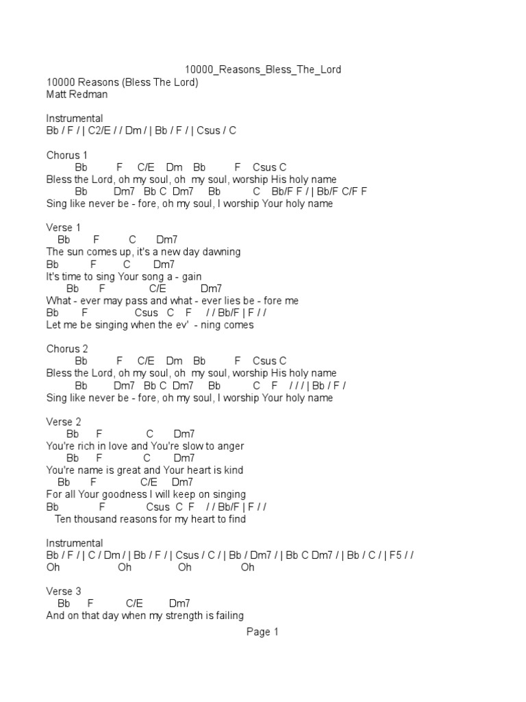 10000 Reasons Bless the Lord | Songs | Musical Compositions