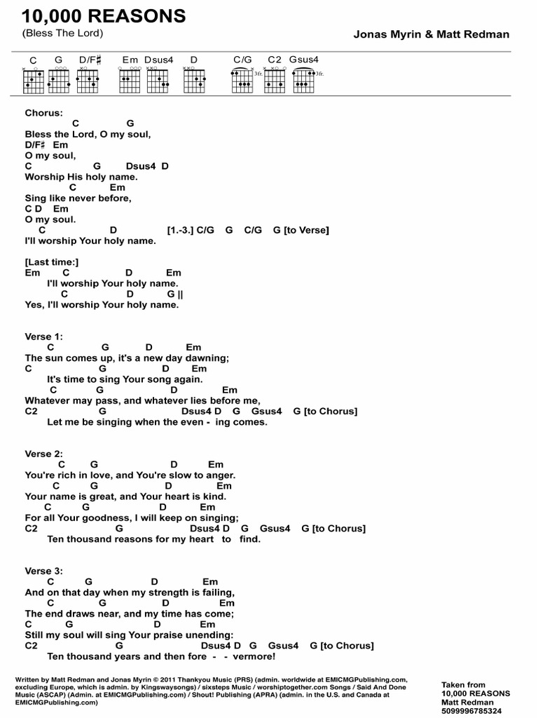10,000 Reasons (Bless The Lord) | Chords, Lyrics and Sheet Music …