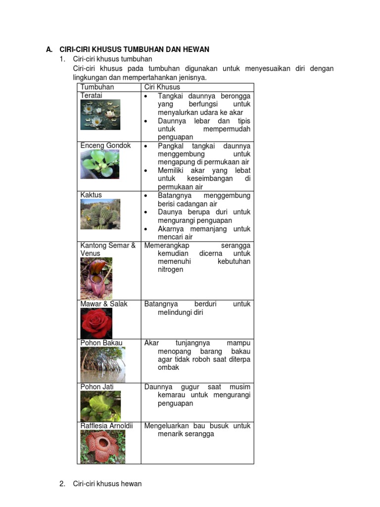 Ciri khusus tumbuhan sd