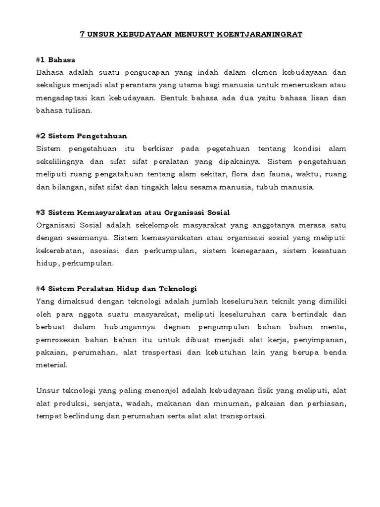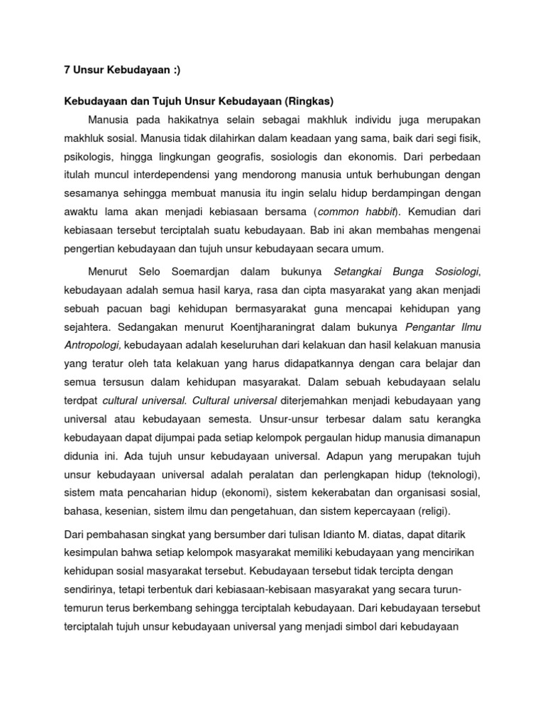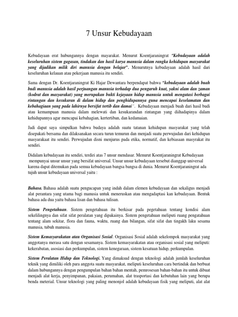 DOC) Unsur Kebudayaan | amad manakal - Academia.edu