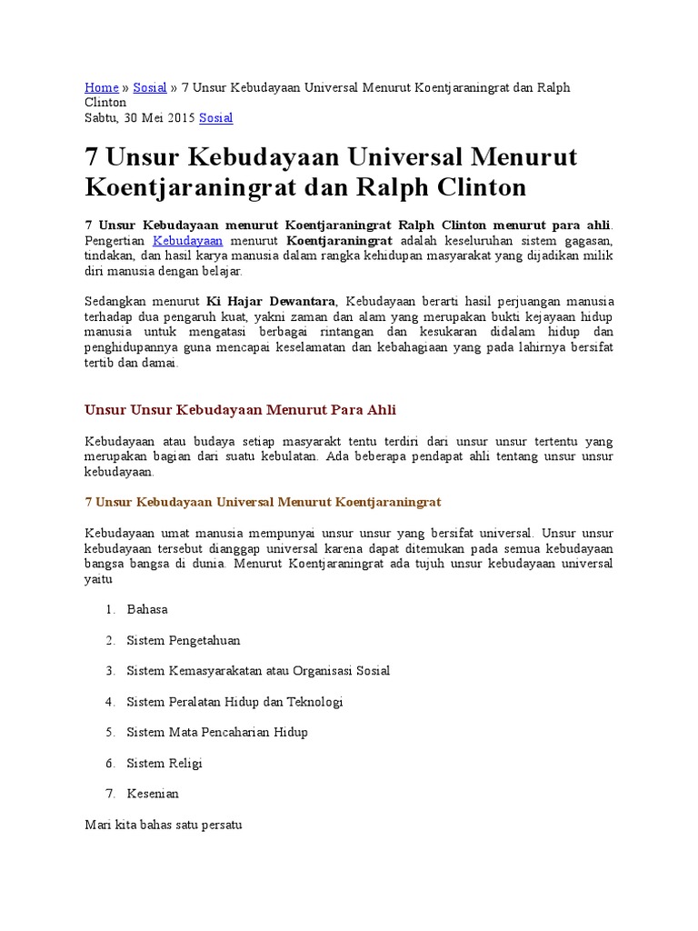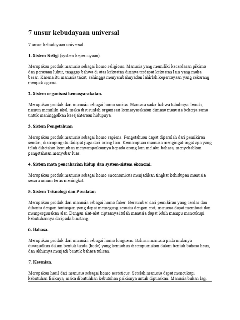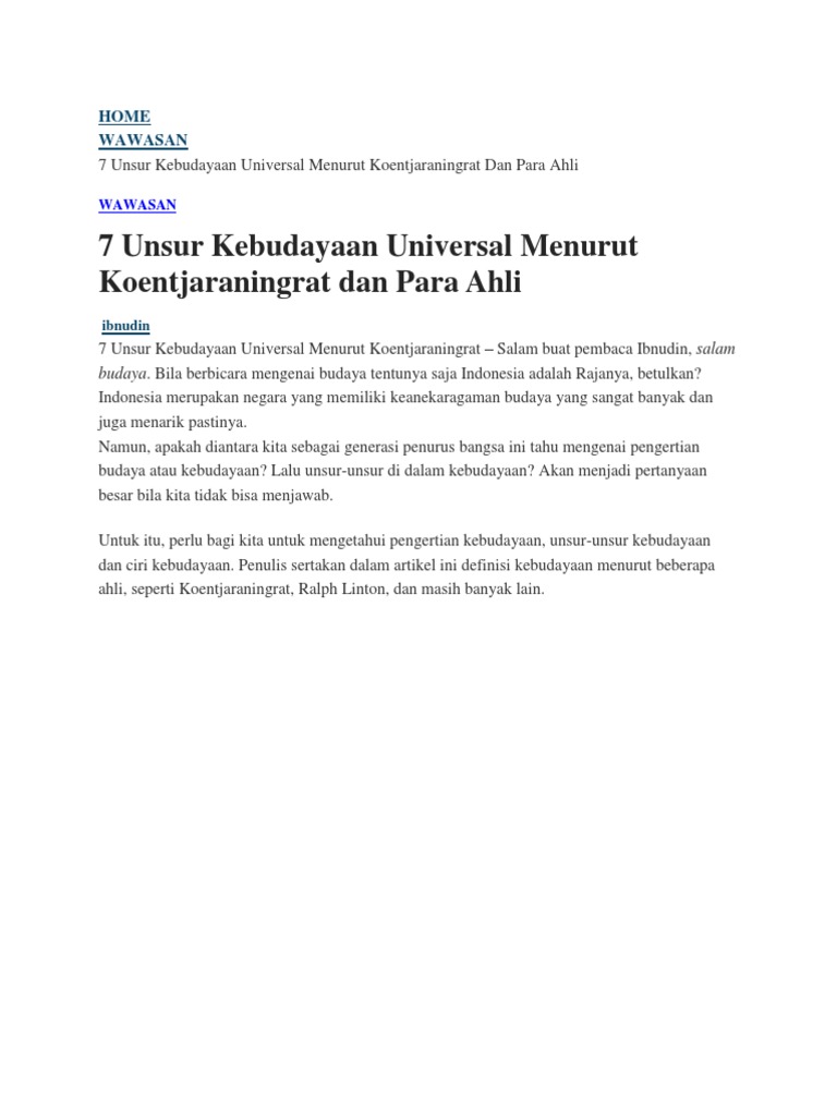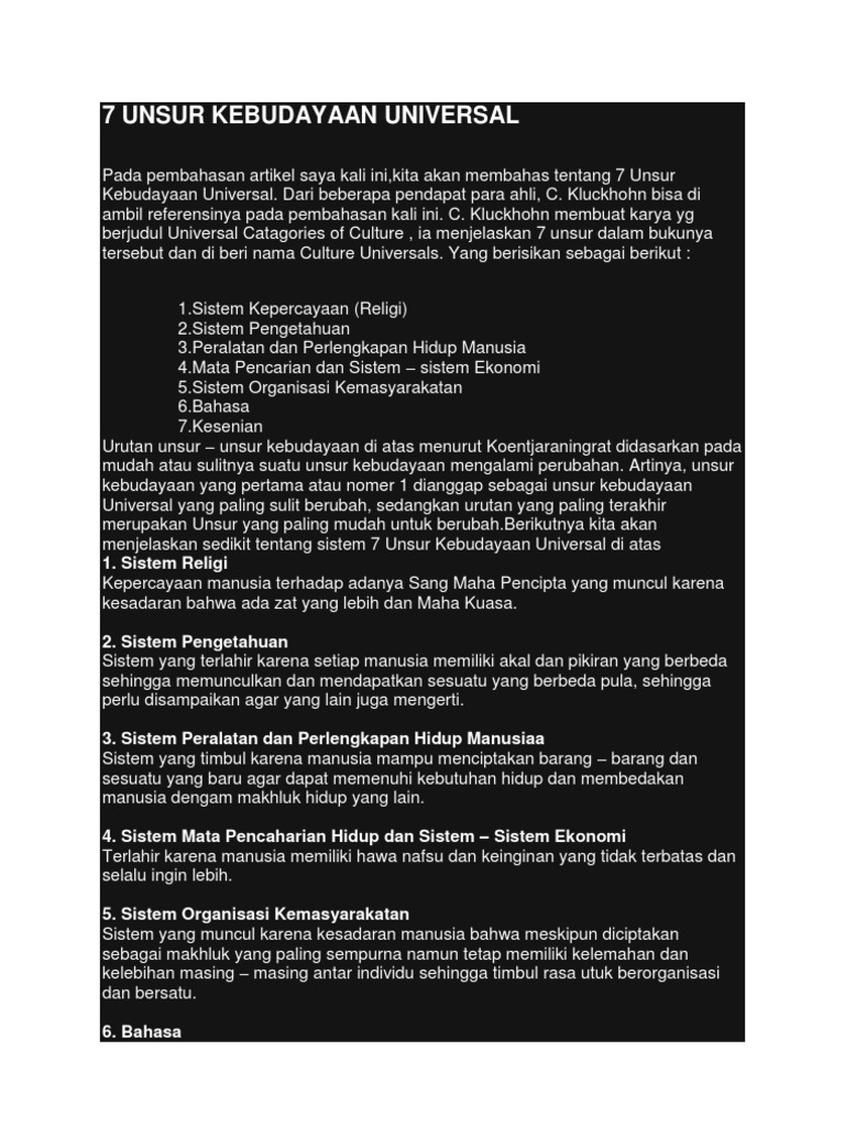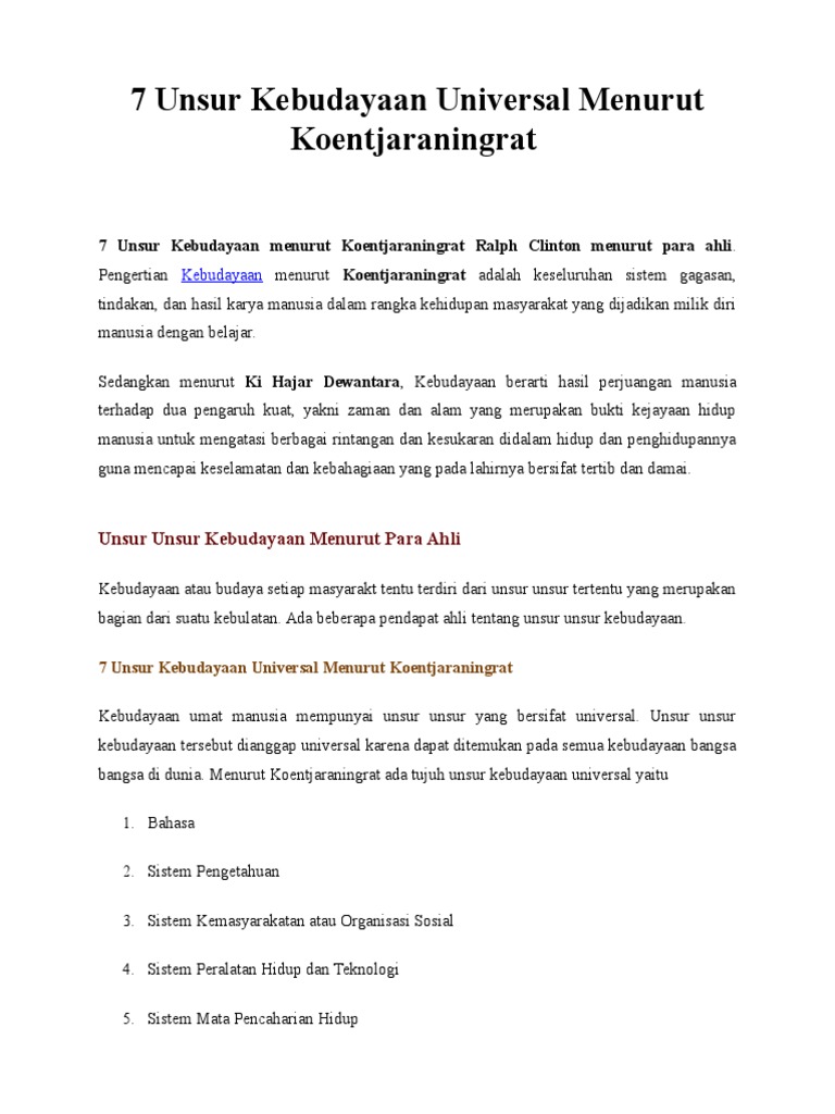 PDF) 7 Unsur Kebudayaan Universal Menurut Koentjaraningrat …