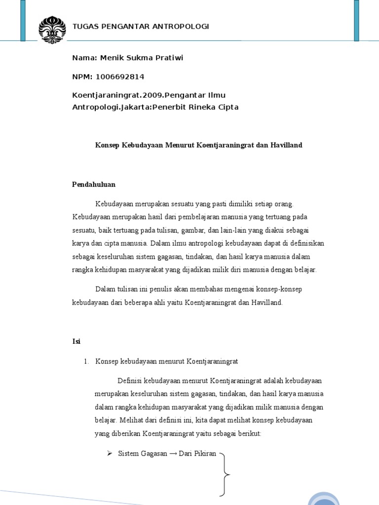 Konsep Kebudayaan Koentjaraningrat Dan Havilland