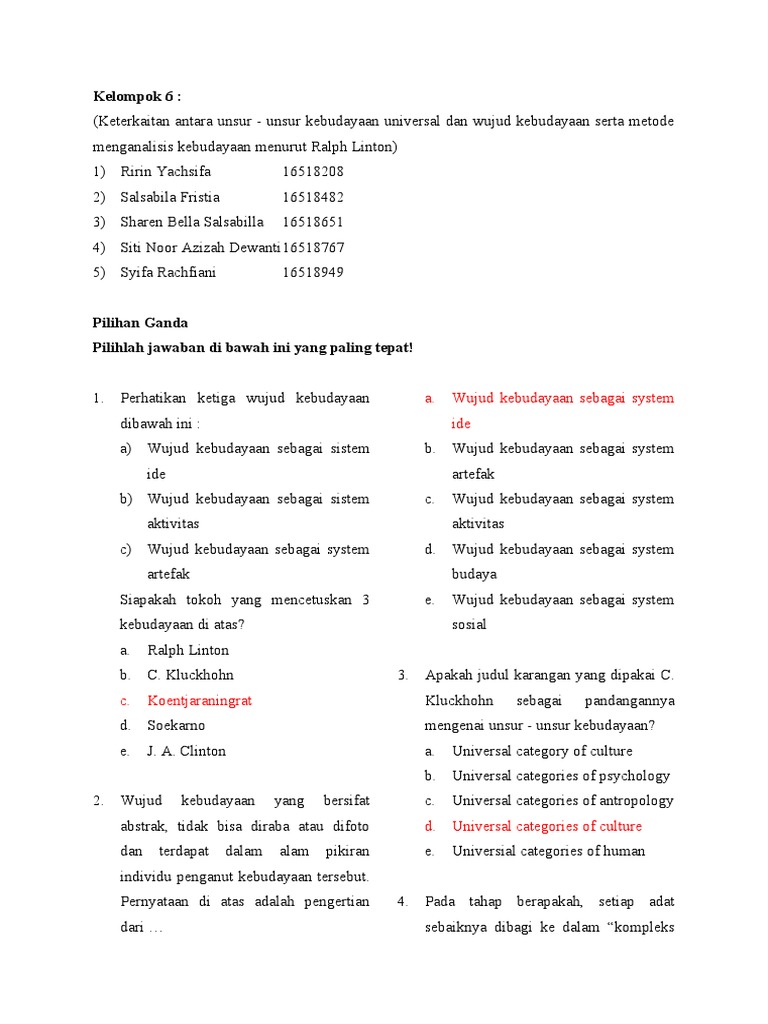 1. Jelaskan pengertian budaya menurut linton 2. Sebutkan 7 unsur …