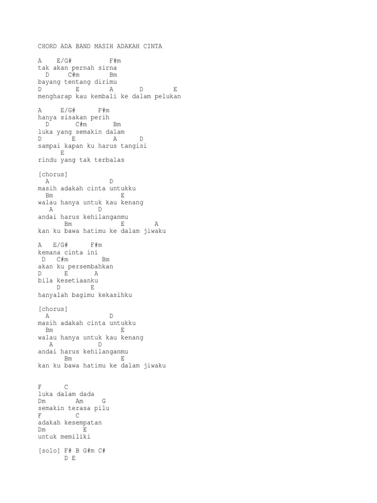 Kunci Chord Gitar Lirik lagu Masih Adakah Cinta - Ada Band - Guitar Chords and Lyrics