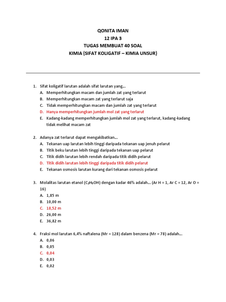 Latihan soal sifat koligatif larutan - Bank Soal
