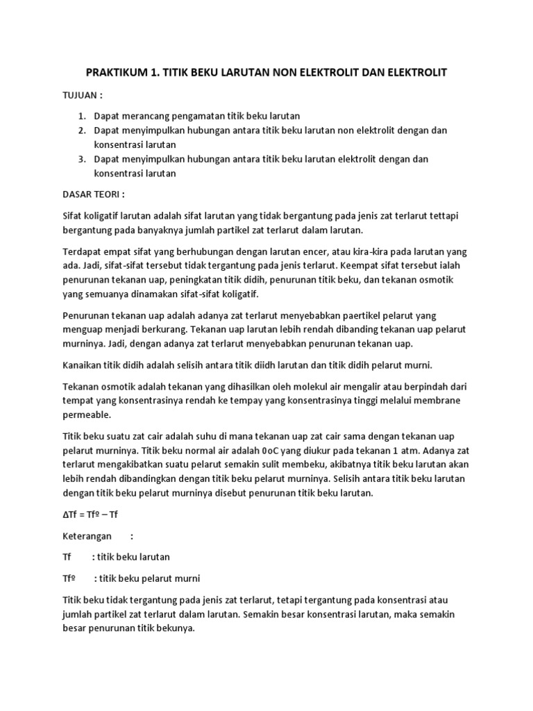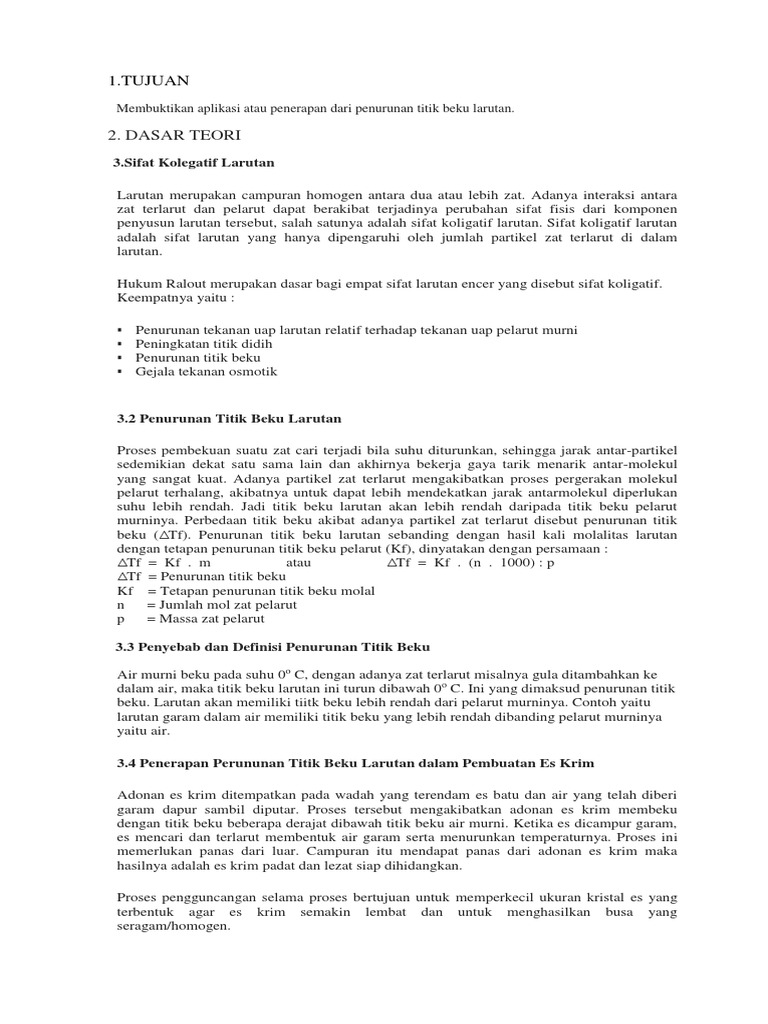 Laporan Pratikum Sifat Koligatif Larutan Kenaikan Titik Didih Dan Titik Beku.docx - Laporan Pratikum Sifat Koligatif Larutan Kenaikan Titik Didih Dan | Course Hero