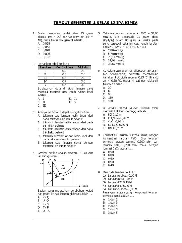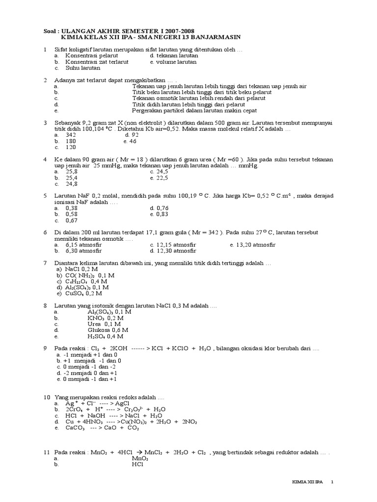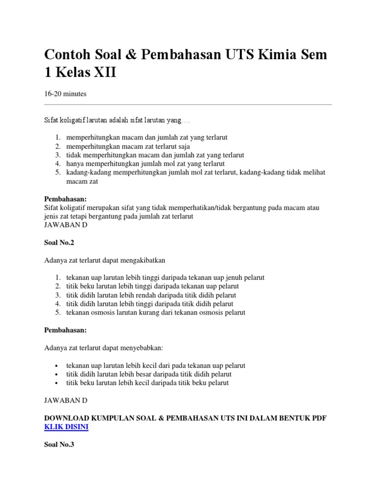 Contoh Soal & Pembahasan UTS Kimia Sem 1 Kelas XII