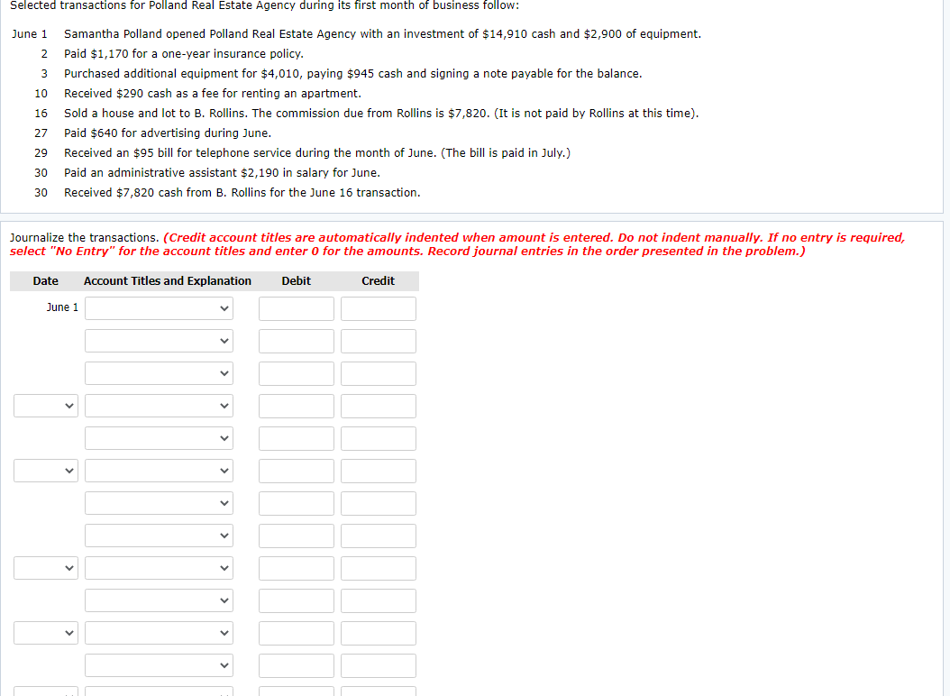 Solved: Selected Transactions For Polland Real Estate Agen… | Chegg.com