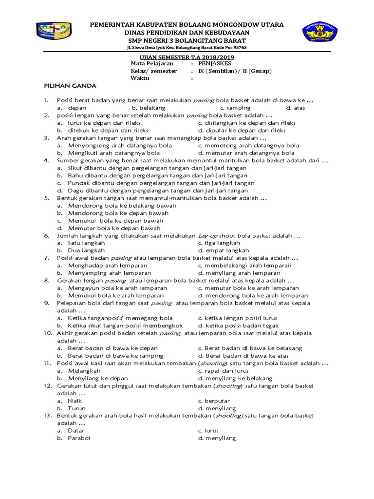 KUNCI JAWABAN Soal Latihan Ulangan PAS / UAS PJOK Penjaskes Kelas 8 SMP / MTS Semester 1 Ganjil 2020 - Halaman 2 - Tribun Pontianak