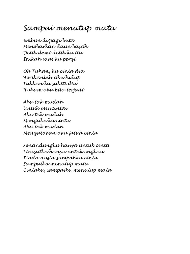 Lirik lagu - 🎵Sampai menutup mata🎵 - Wattpad