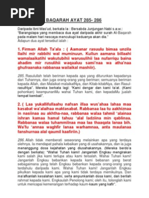 Kelebihan Surah Al Baqarah Ayat 285 286