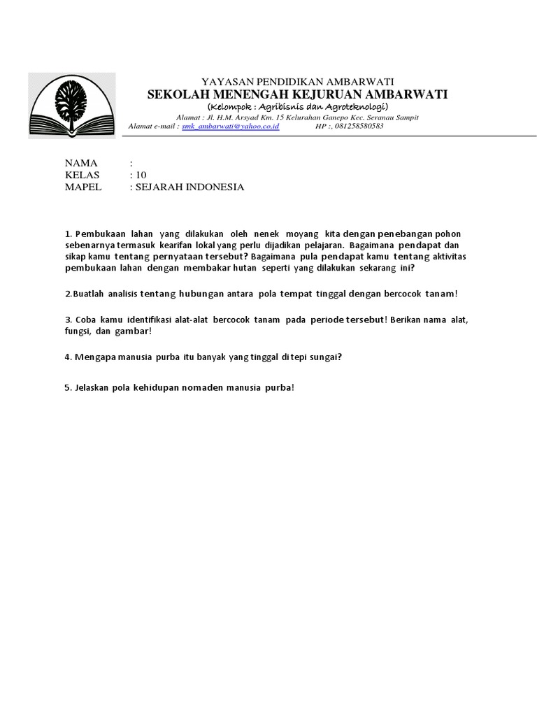 Lembar kerja siswa 2 manusia purba