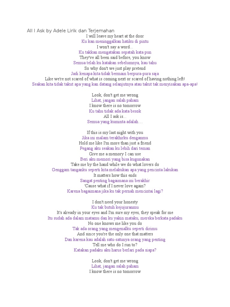 All I Ask Adele Lirik Dan Terjemahan