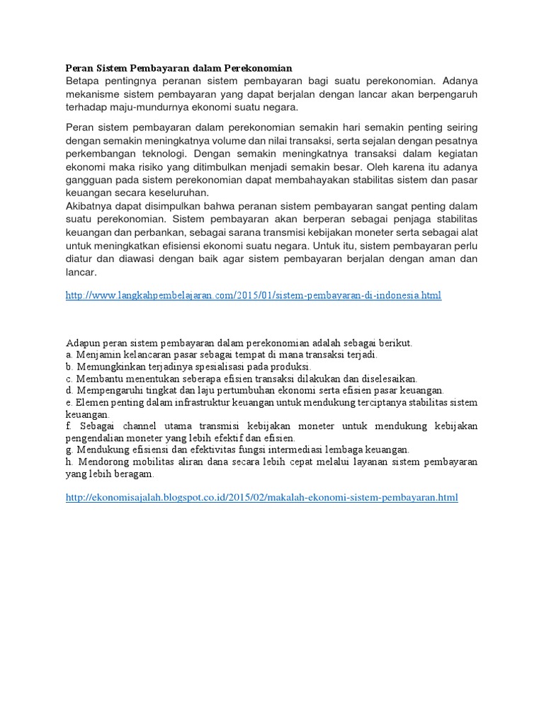 Analisislah peran sistem pembayaran dalam perekonomian nasional …