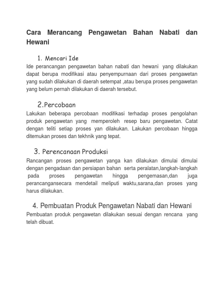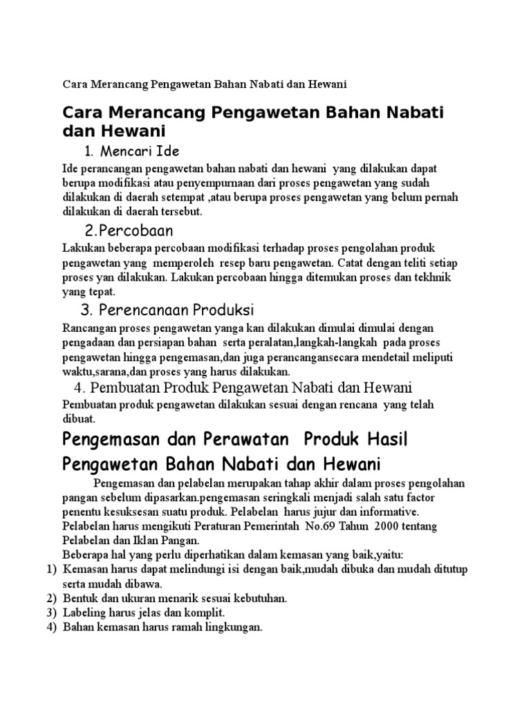 Cara Merancang Pengawetan Bahan Nabati Dan Hewani