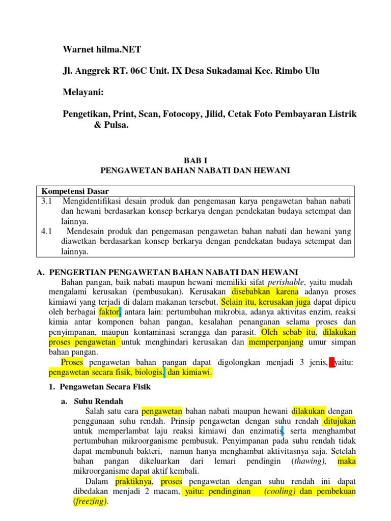 PENGOLAHAN DAN WIRAUSAHA PENGAWETAN BAHAN NABATI DAN HEWANI …