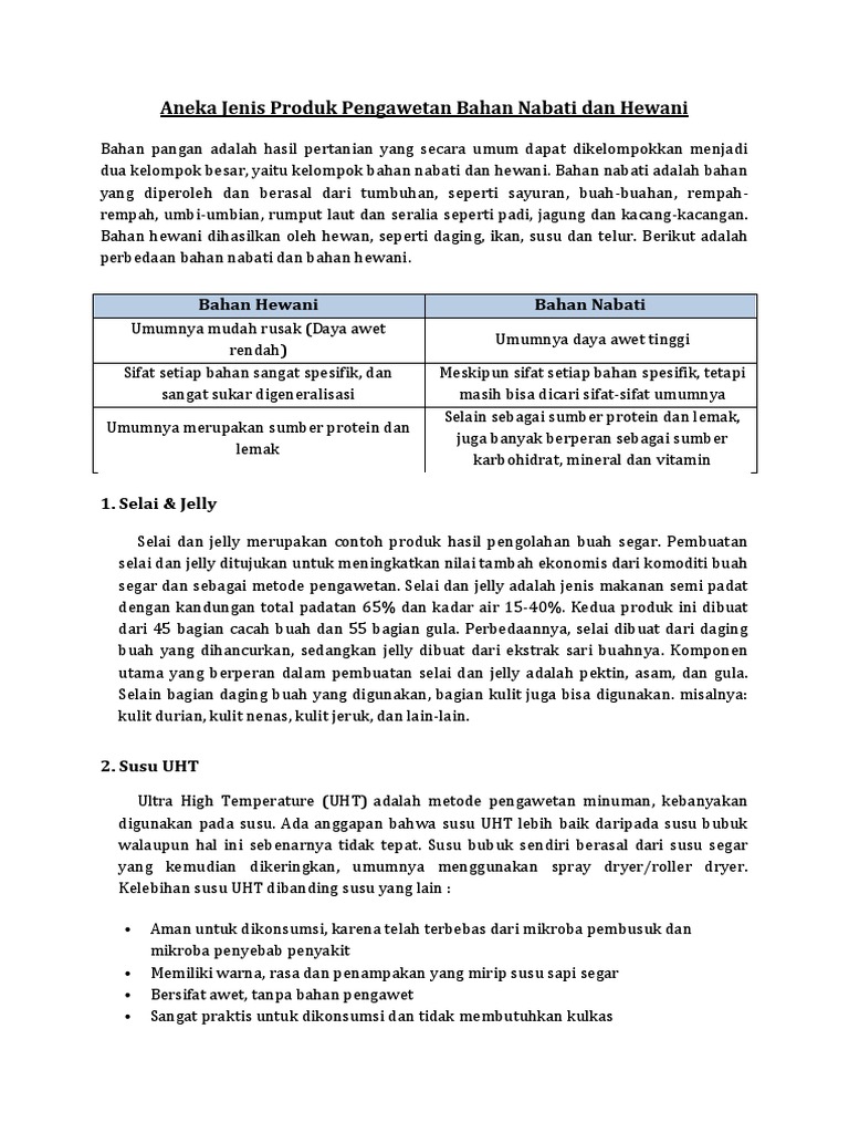 Aneka Jenis Produk Pengawetan Bahan Nabati dan Hewani by Syifa …