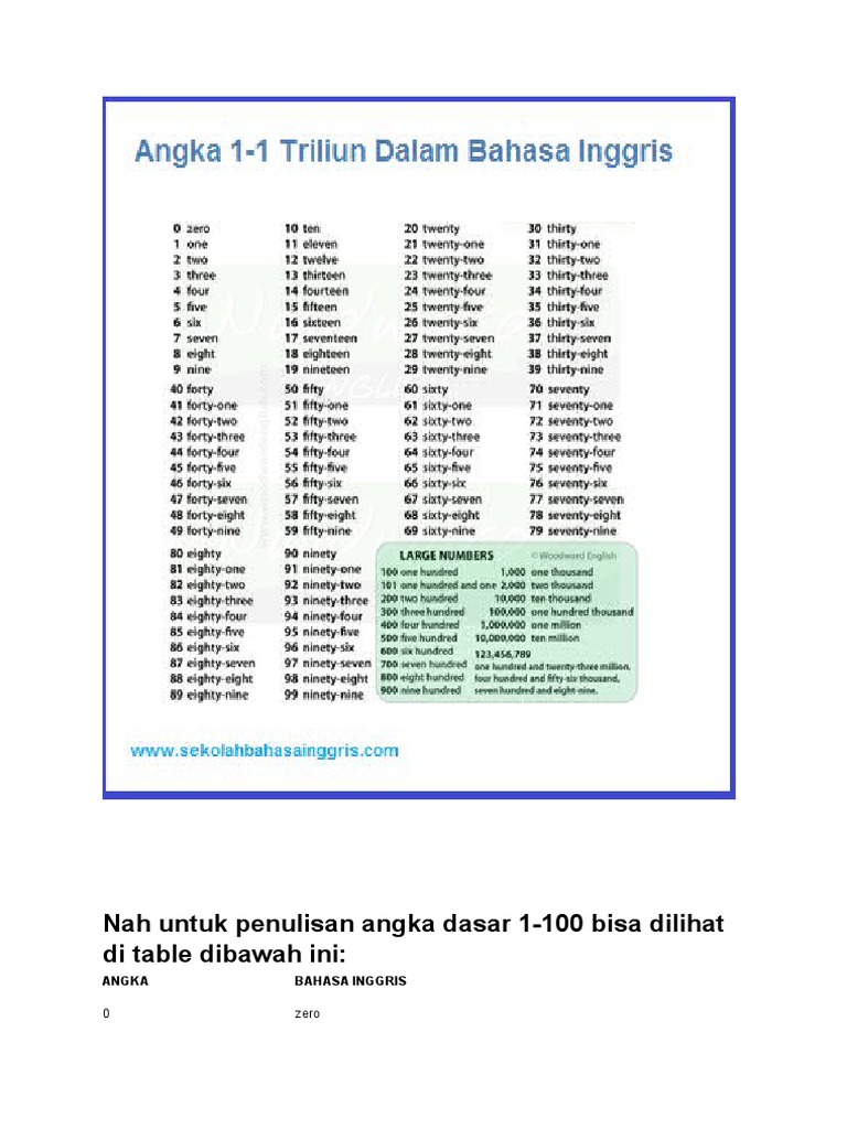 Angka Dalam Bahasa Inggris 1 Sampai 100 - [DOCX Document]