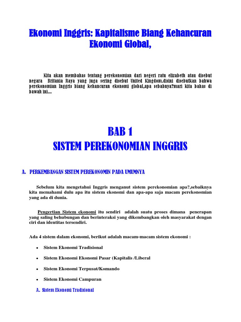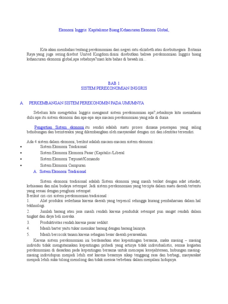 Bab 1 Sistem Perekonomian Inggris: Ekonomi Inggris: Kapitalisme …