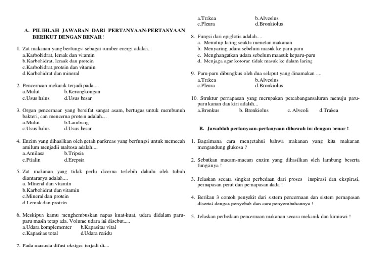 Soal IPA Sistem Pencernaan Makanan Kelas 8 Semester 1.docx - Soal …