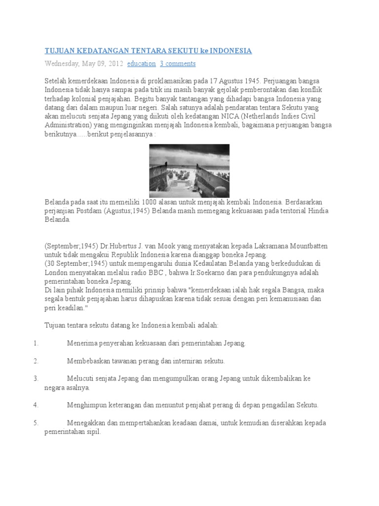 Apa tugas tentara sekutu datang ke Indonesia ? - Brainly.co.id