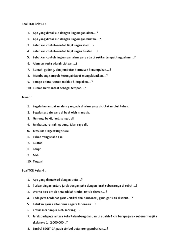 Soal Tor Ips Kelas 3 - 6 Sd