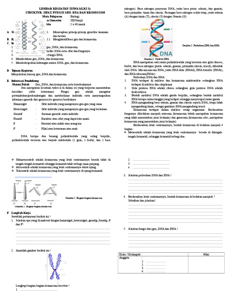 DOC) PENGERTIAN DNA, GEN DAN KROMOSOM | Dillah Nurfadillah …