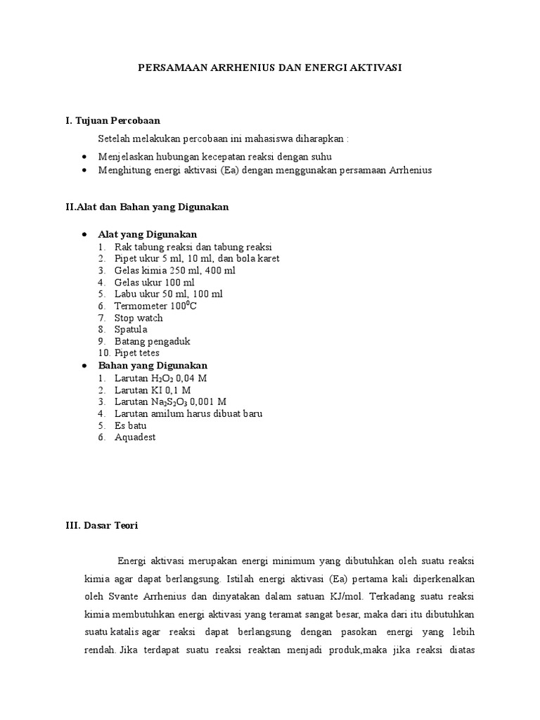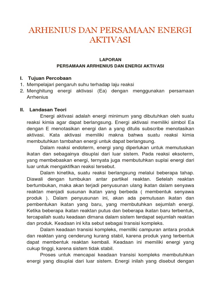 Persamaan Arrhenius Dan Energi Aktivasi