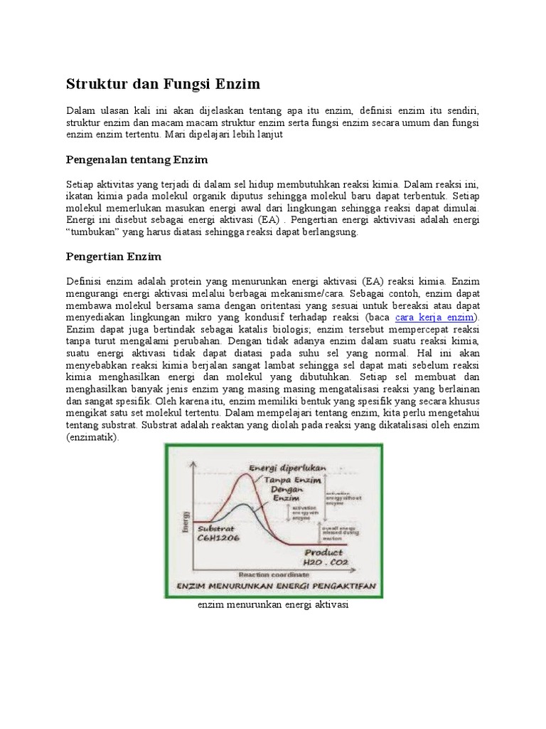 Enzim Pengertian Klasifksi Energi Aktivasi