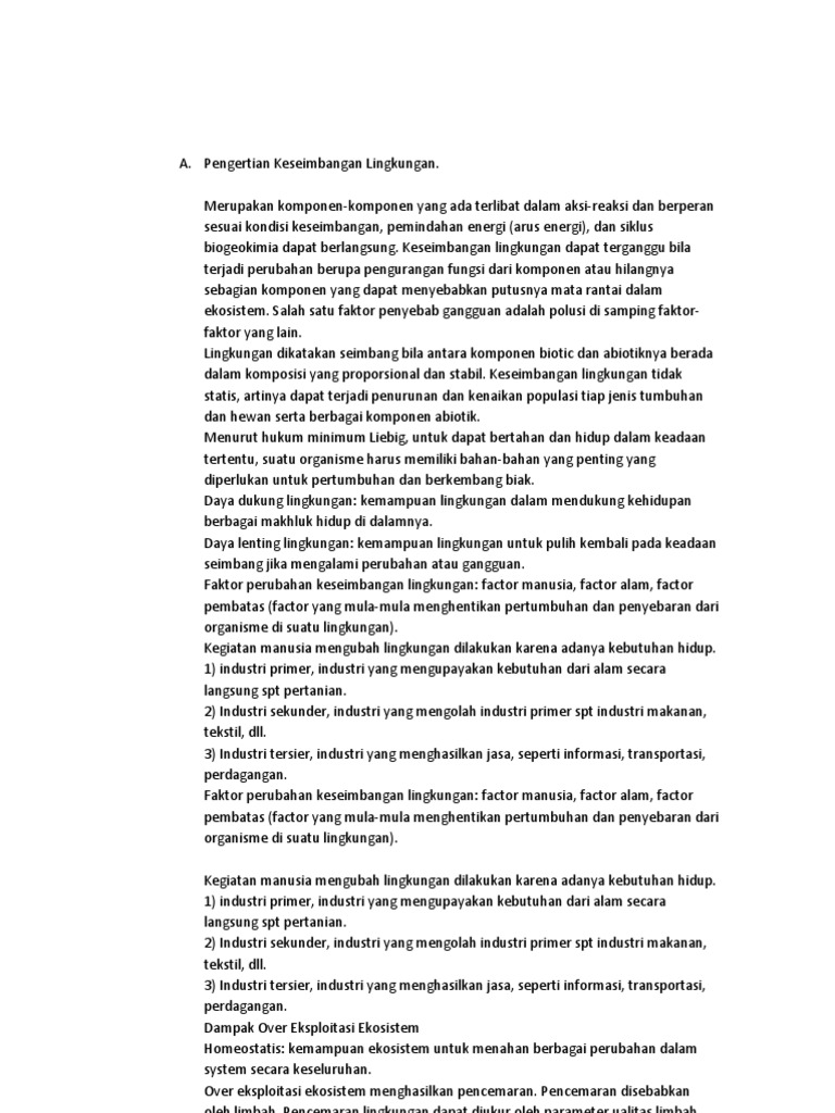 Jelaskan apa yang dimaksud dengan keseimbangan lingkungan yang …