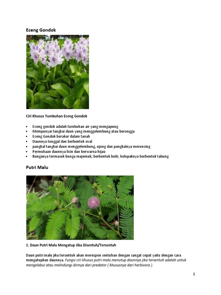 contoh ciri khusus yang dimiliki tumbuhan eceng gondok adalah - Brainly.co.id