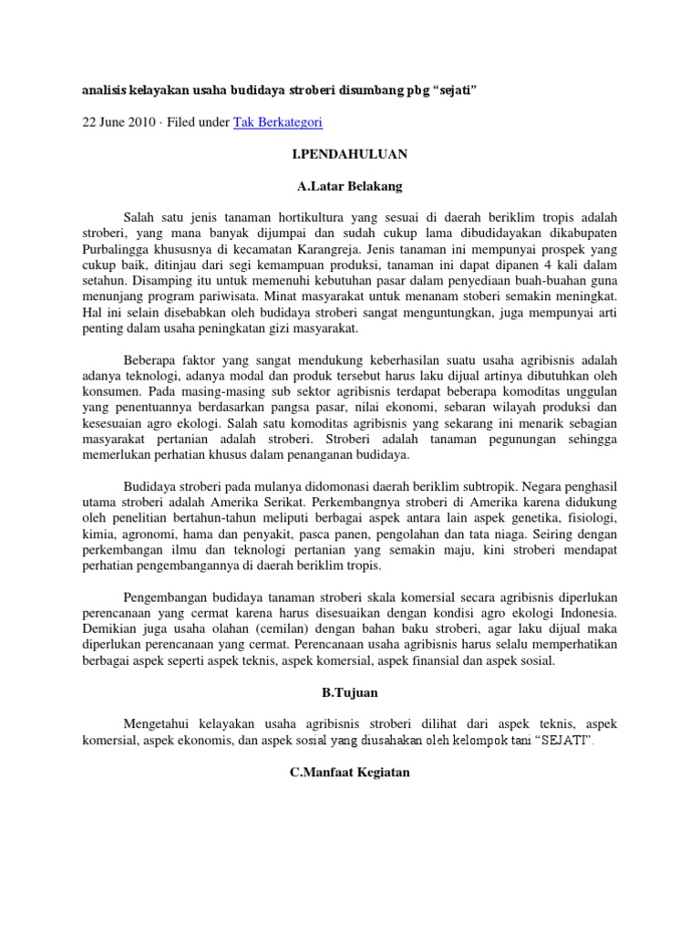 Analisis Kelayakan Usaha Budidaya Stroberi Disumbang Pbg