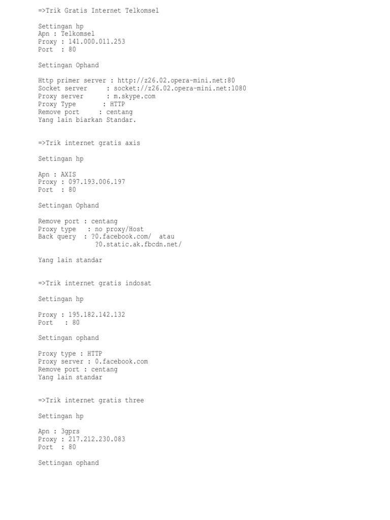 Config Internet Gratis Operator Indonesia - Home | Facebook