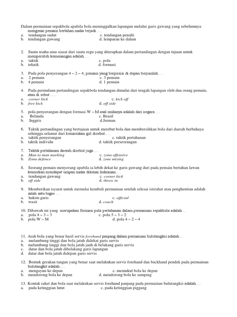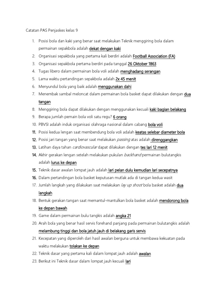 DOC) KISI-KISI SOAL UAS PENJASKES | davedavid siregar - Academia.edu