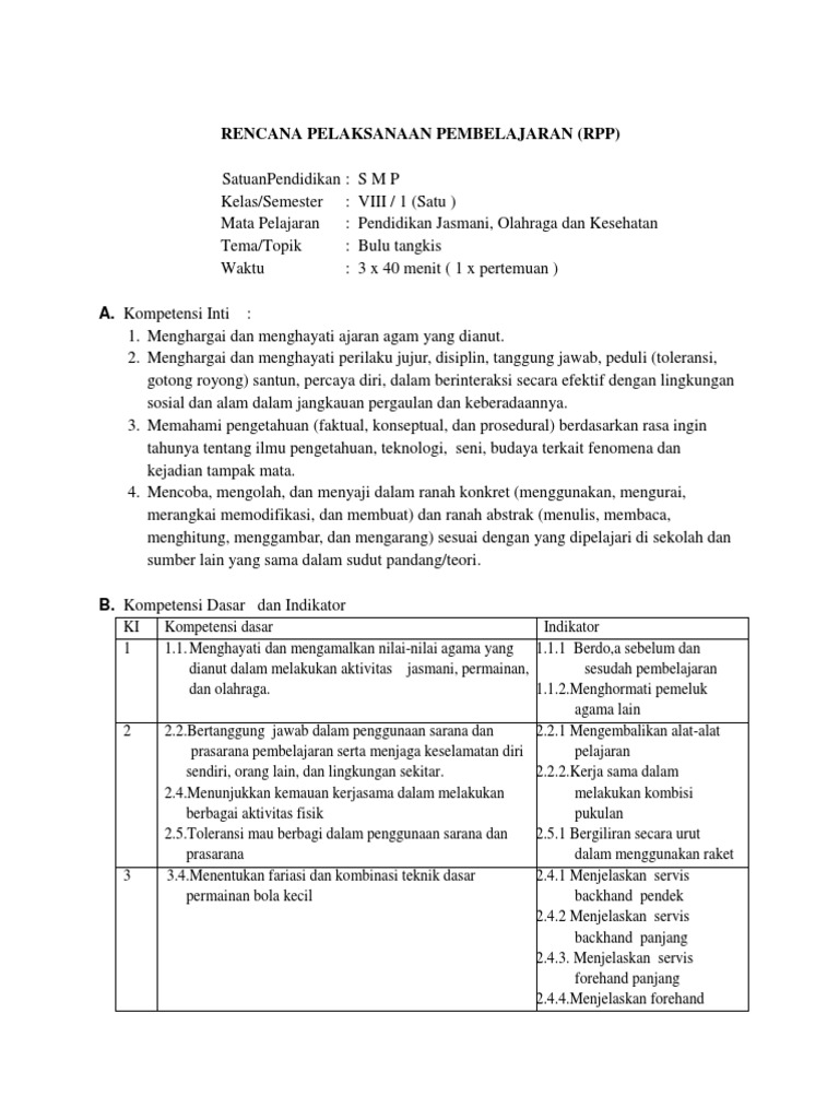 Rpp Bulu Tangkis Kelompok 5