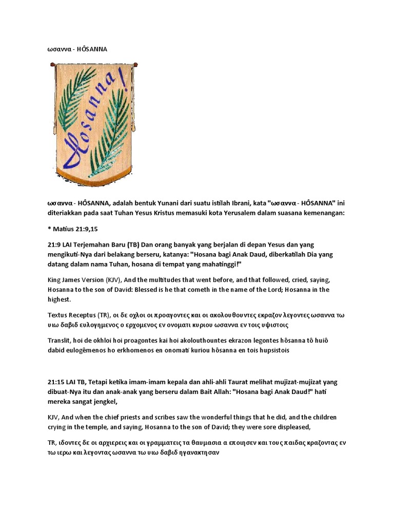 Laskar Doa Nusantara on Twitter: “Arti dari “hosanna” - peristiwa …
