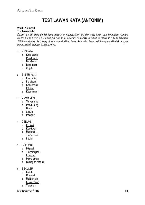 PDF) Test antonim lawan kata | new bee - Academia.edu