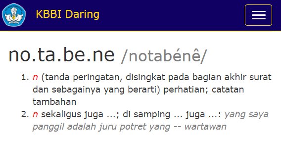 4 Arti Kata Notabene di Kamus Besar Bahasa Indonesia (KBBI …