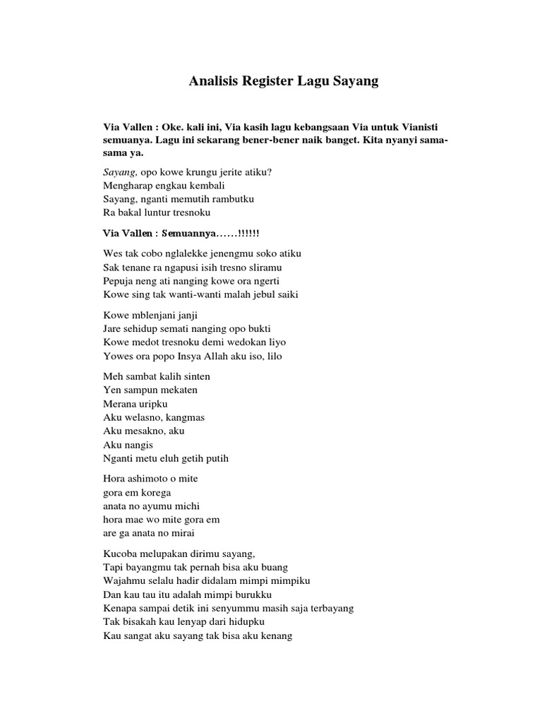 lirik lagu dan terjemahan - Sayang- Via Vallen - Wattpad