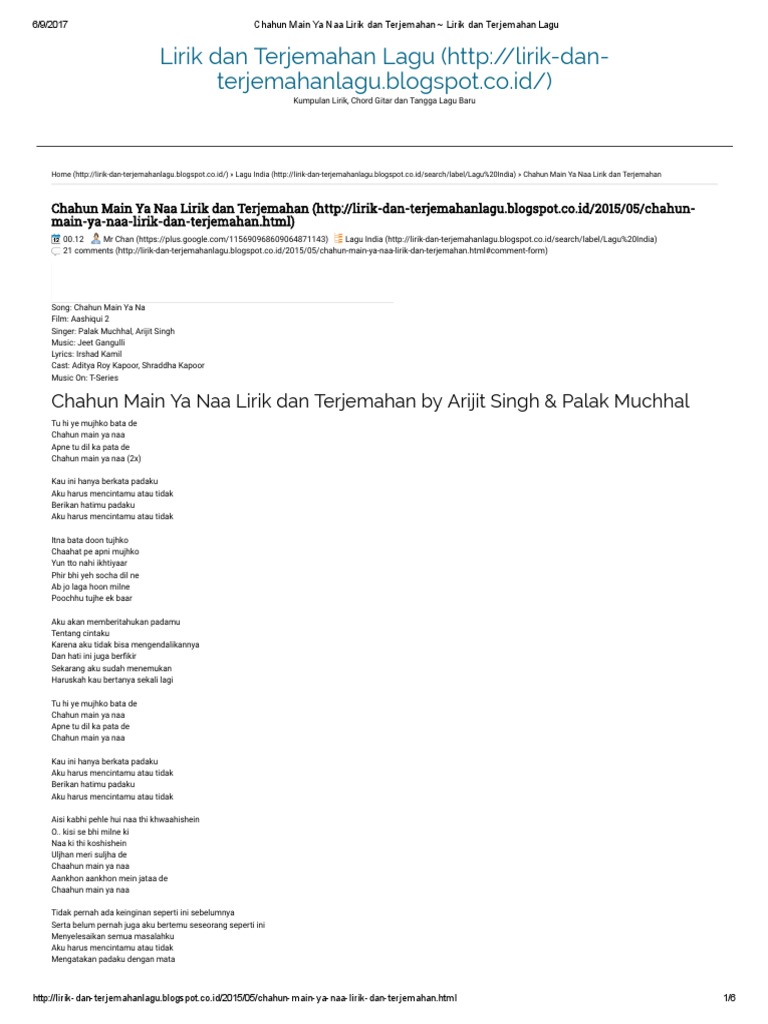 Chahun Main Ya Naa Lirik Dan Terjemahan _ Lirik Dan Terjemahan Lagu