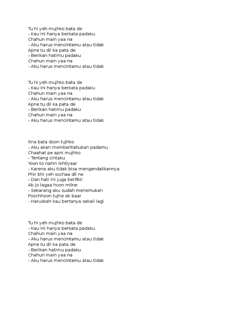 lirik lagu india 🇮🇳 - Chahun main ya naa - Wattpad