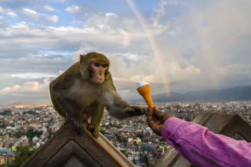 Asyik-asyik kucing je dapat makan! Monyet pun nak makan juga …