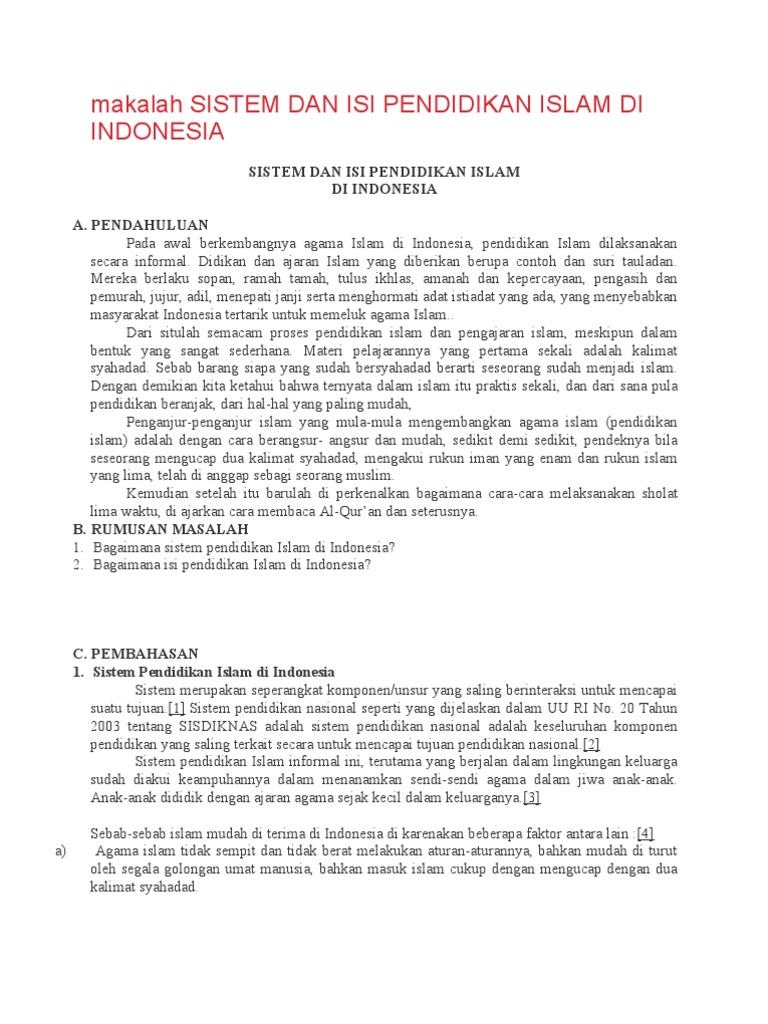 Makalah Sistem Dan Isi Pendidikan Islam Di Indonesia Rus