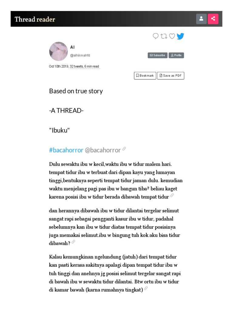 Thread Reader App on Twitter: “Hi the unroll you asked for: Thread by @BusukIkan: “Cerita ke 4 -Jemaima- . . . . A thread […]” #bacahoror # bacahorror https://t.co/794A6SsP6l Talk to you soon.