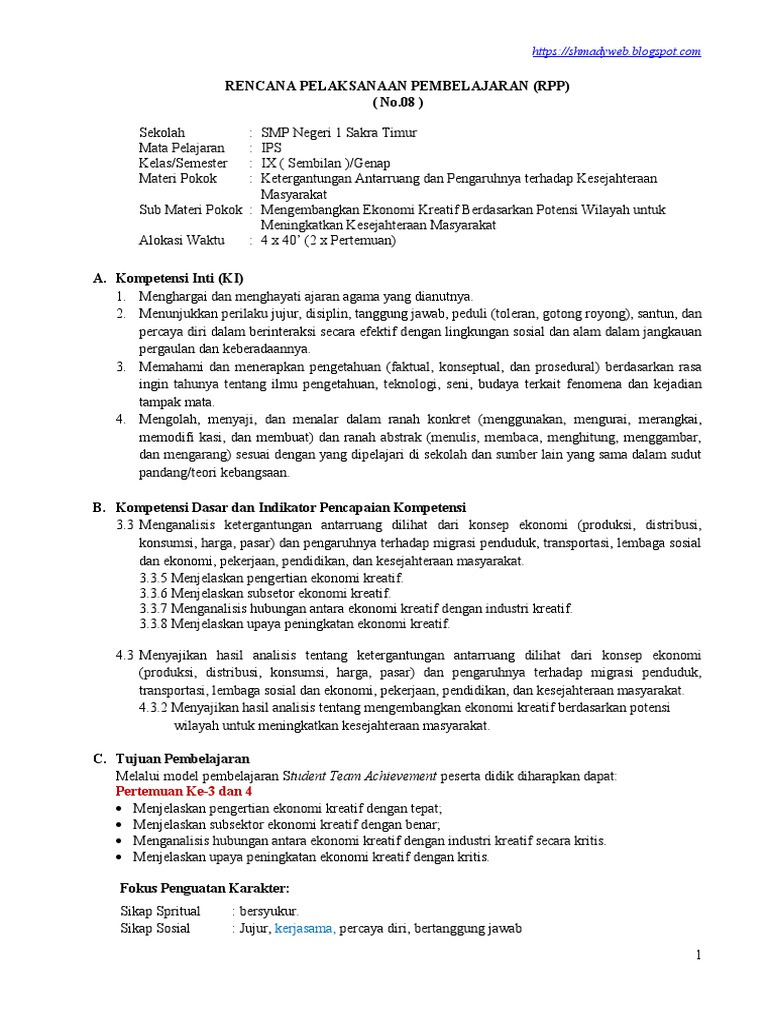 RPP IPS Kelas 9 Mengembangkan Ekonomi Kreatif Berdasarkan …