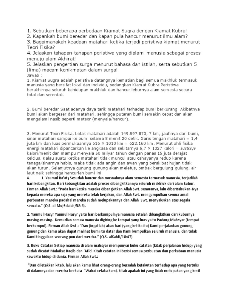 Kunci Jawaban Soal Materi Iman Kepada Hari Akhir kelas XII SMA/SMK …