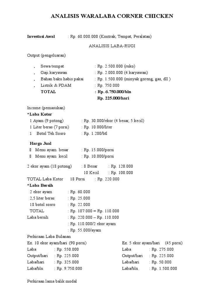 Analisis Waralaba Corner Chicken: Investasi Awal
