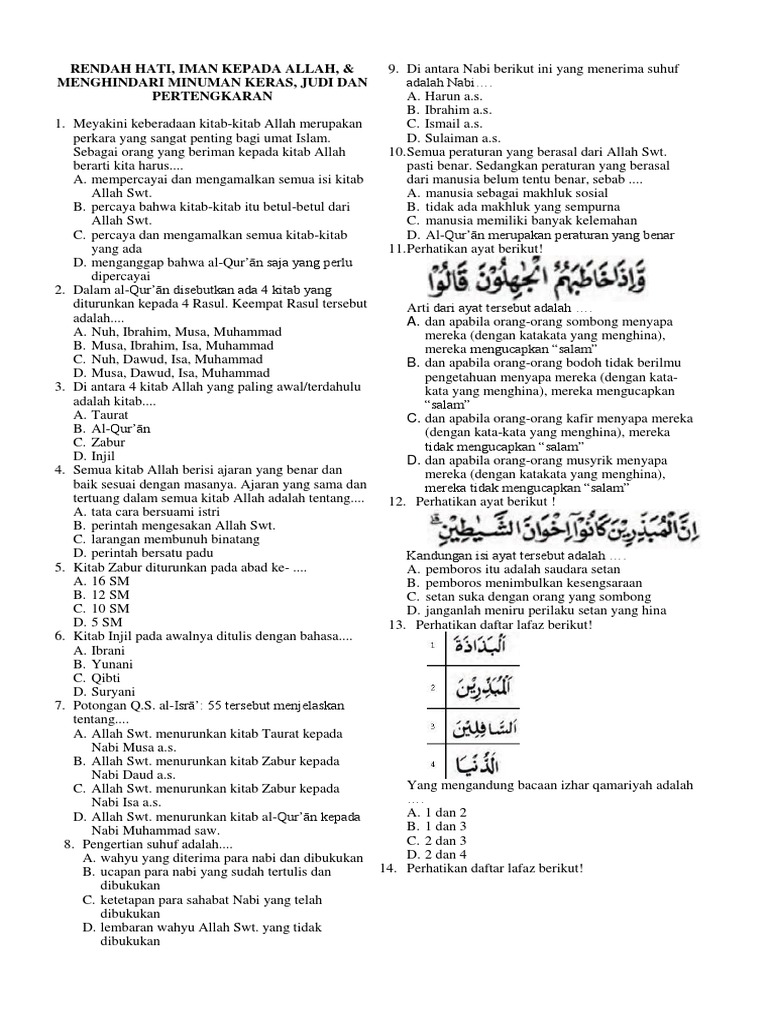 Rendah Hati, Iman Kepada Allah, & Menghindari Minuman Keras, Judi …
